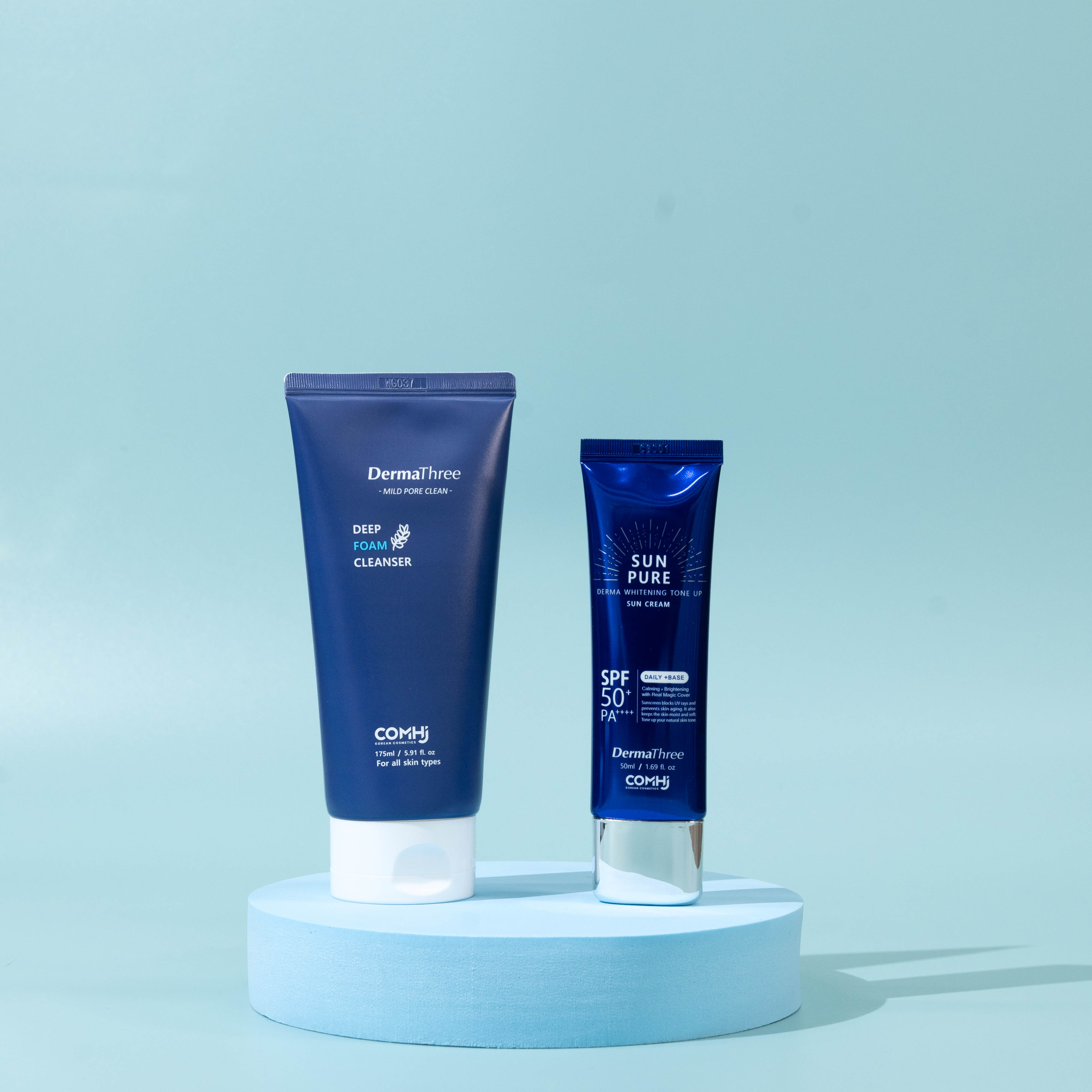 Bộ đôi kem chống nắng - sữa rửa mặt Comhi Dermathree